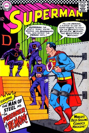 Cliffhanger: Dr. Demo, leader of DEMON, has Superman trapped. Lois Lane and Jimmy Olsen are held hostage and will die unless Superman gives up the Star of Sinsubhani.