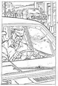 from straight on side, so we see the truck and rednecks through Fitz' window.