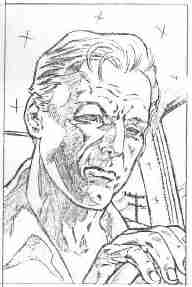 scarf over his face and a hypo in his hand, coming for her. Her hand is up,